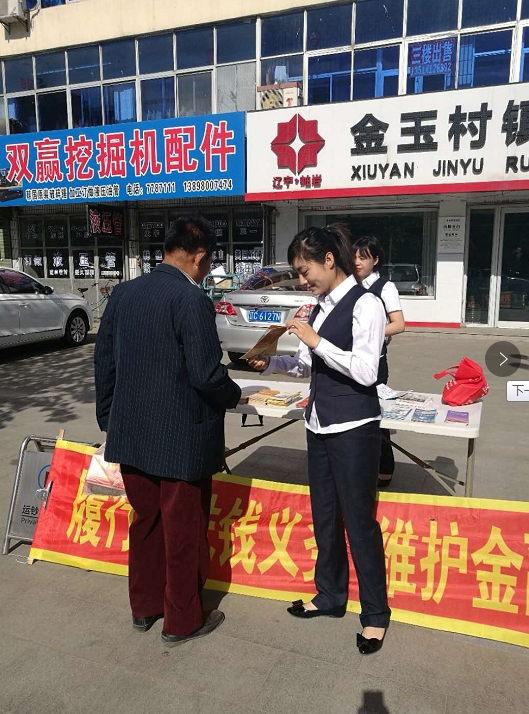 遼寧岫巖金玉村鎮(zhèn)銀行股份有限公司在岫巖舉行抵制非法集資,警惕詐騙陷阱現(xiàn)場宣傳活動。